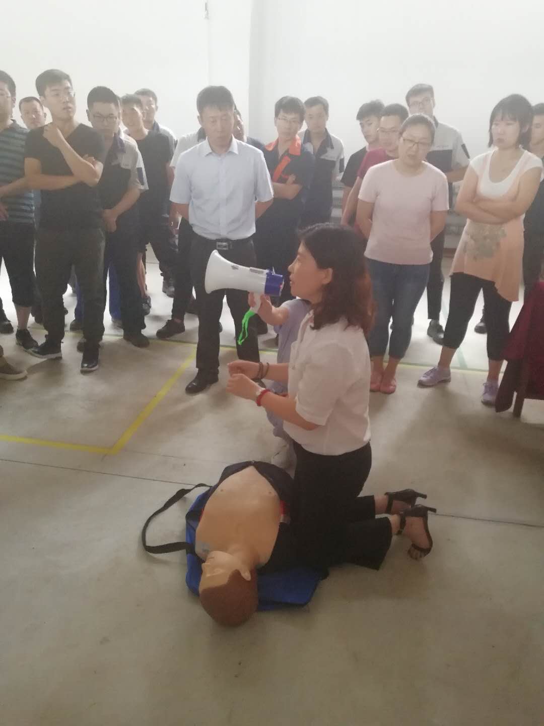 此次活動邀請沈陽市第一人民醫院副院長徐冰教授,做急救知識講座及心肺復蘇演練,徐教授針對如何掌握基本心肺復蘇技術的操作要點及注意事項進行了細致講解,隨后利用仿真模擬人進行急救演示,員工現場進行了練習操作。